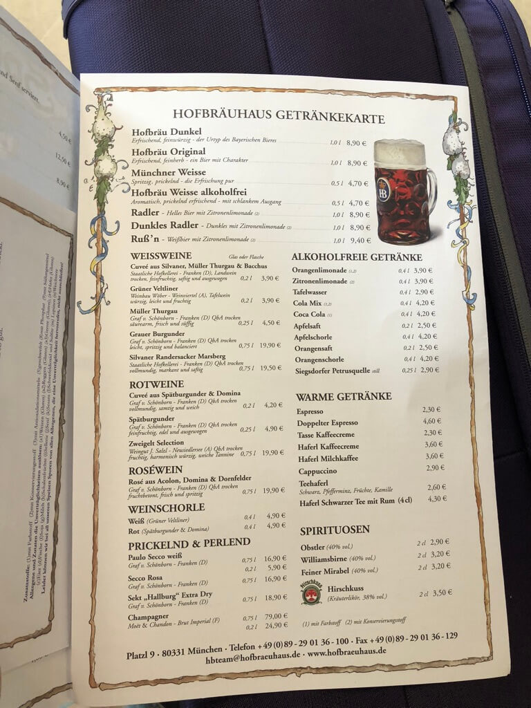 この1リットルビールはミュンヘンで有名なビアホール、「Hofbräuhaus(ホフブロイハウス)」のビールです。
