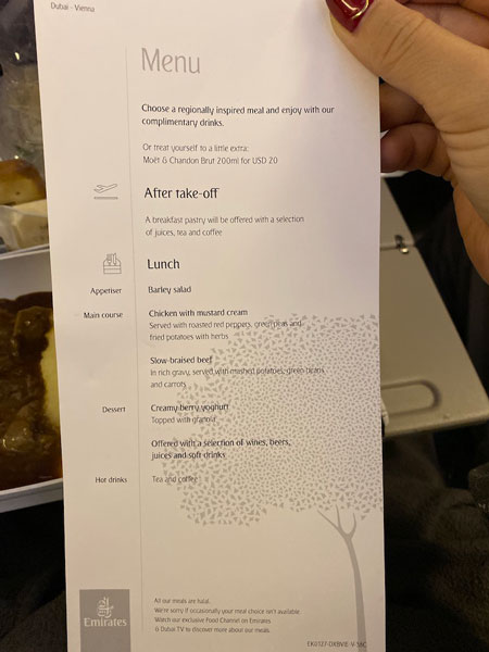 フライトの48時間前から座席指定が無料でできるので、ドバイ⇄ウィーン間は時間も短いので、そちらを利用しました。こちらは運良く隣同士になれたので良かったです。