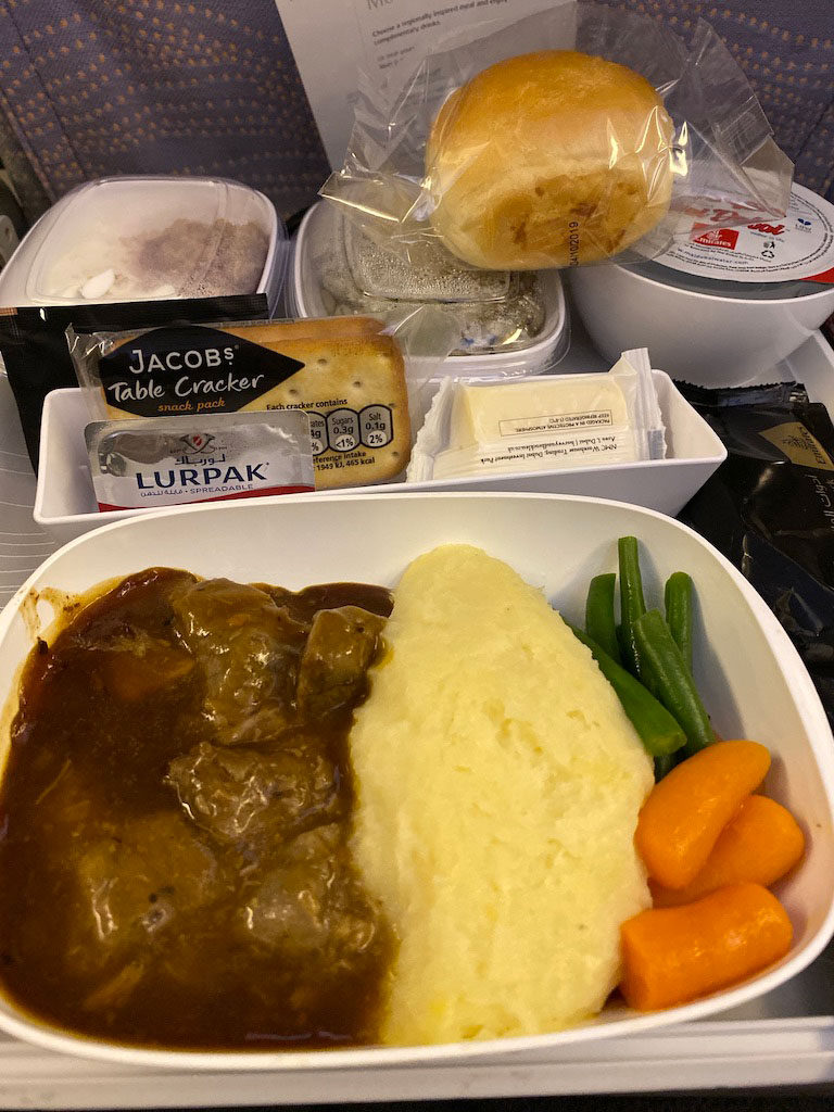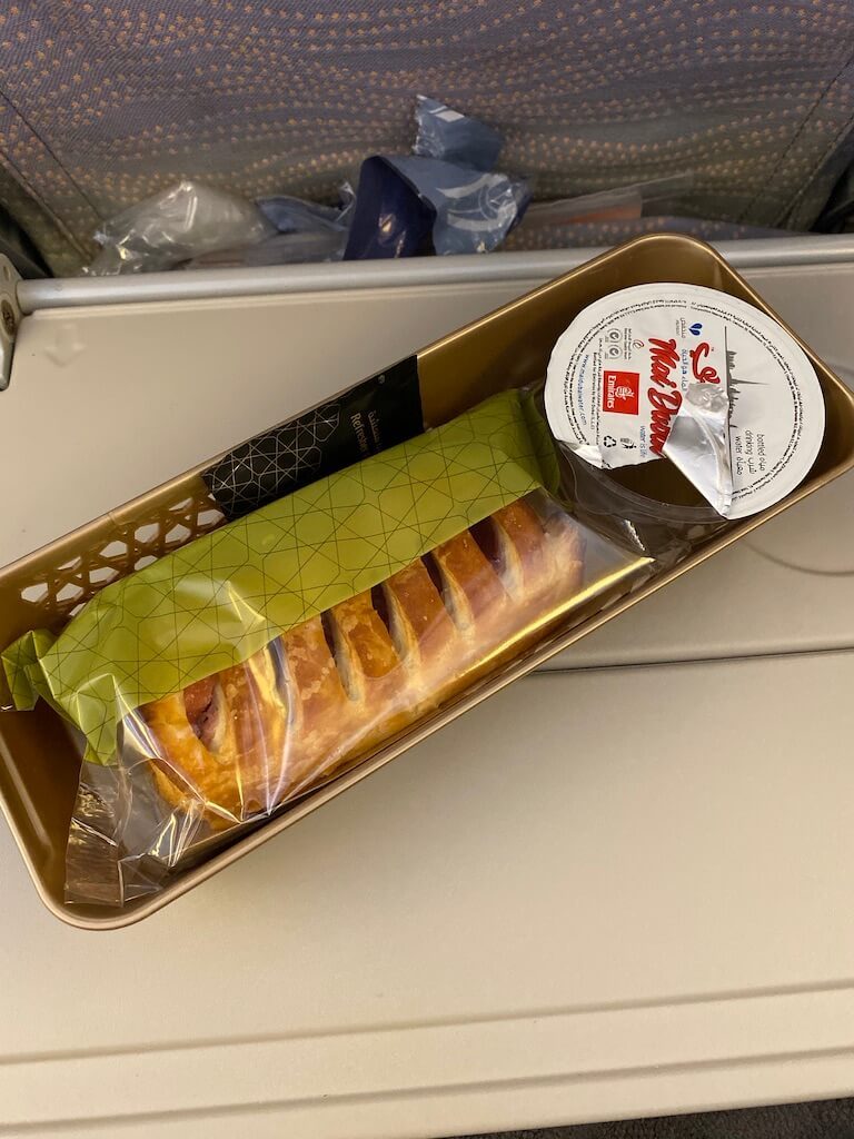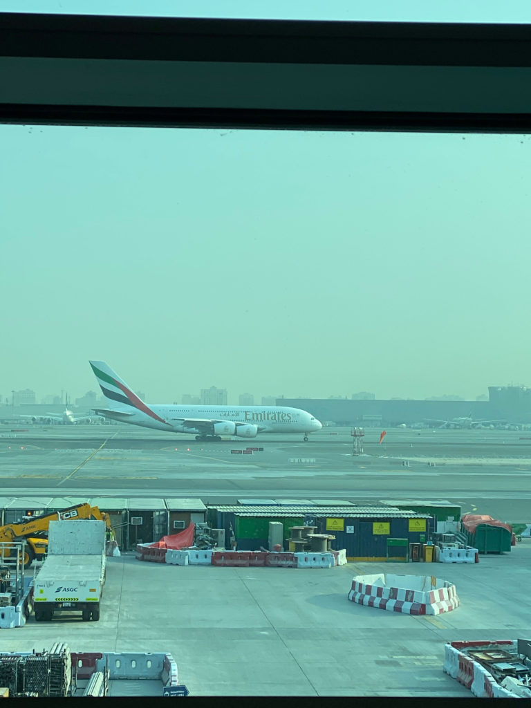 エミレーツは今回3度目でした。座席が広めで、最新の映画もやっていて、ご飯も悪くないのでとても好きな航空会社です。あと、アメニティが入ったポーチがもらえます。